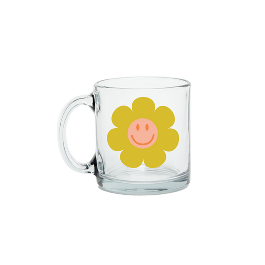 Smiley Flower Clear Glass Mug