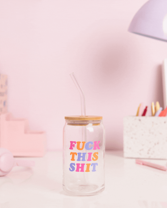 Can Glass w/ Lid + Straw