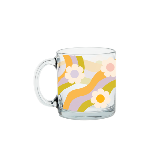 Wavy Daisy Clear Glass Mug