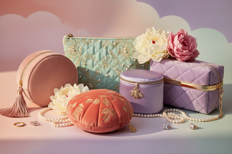 Bouclé Bow Cosmetic Case – Soft Structured Makeup Pouch for Travel or Daily Essentials